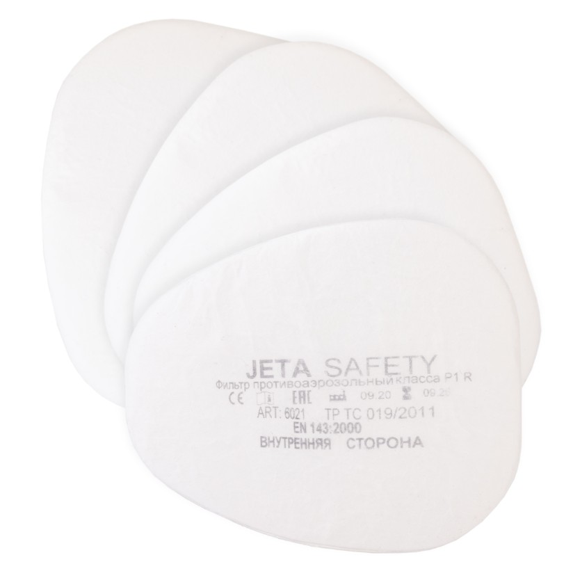 6021 Фильтр противоаэрозольный Jeta Safety класса P1 R, в упаковке 4 шт/коробка 100 шт. Крепится к фильтрам 6510, 6540, 6541, адаптеру 6101 при помощи держателя 5101.