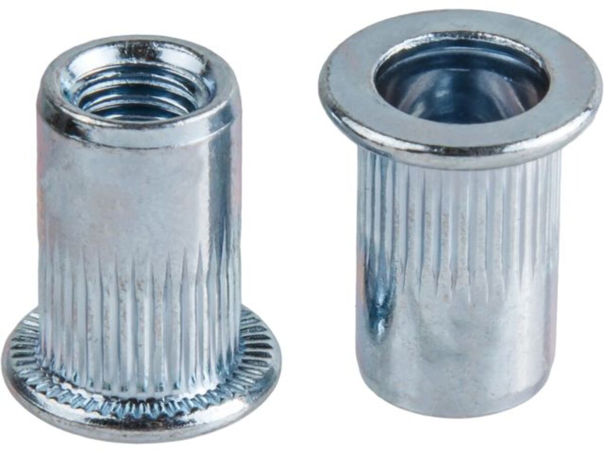 Резьбовые заклепки с насечками и цилиндрическим бортиком предназначены для создания прочного резьбового соединения в тонкостенных материалах, таких как листовой металл, пластик, композитные панели и профили. Они позволяют сформировать устойчивую внутреннюю резьбу, готовую к вкручиванию винтов, болтов или других крепежных элементов.